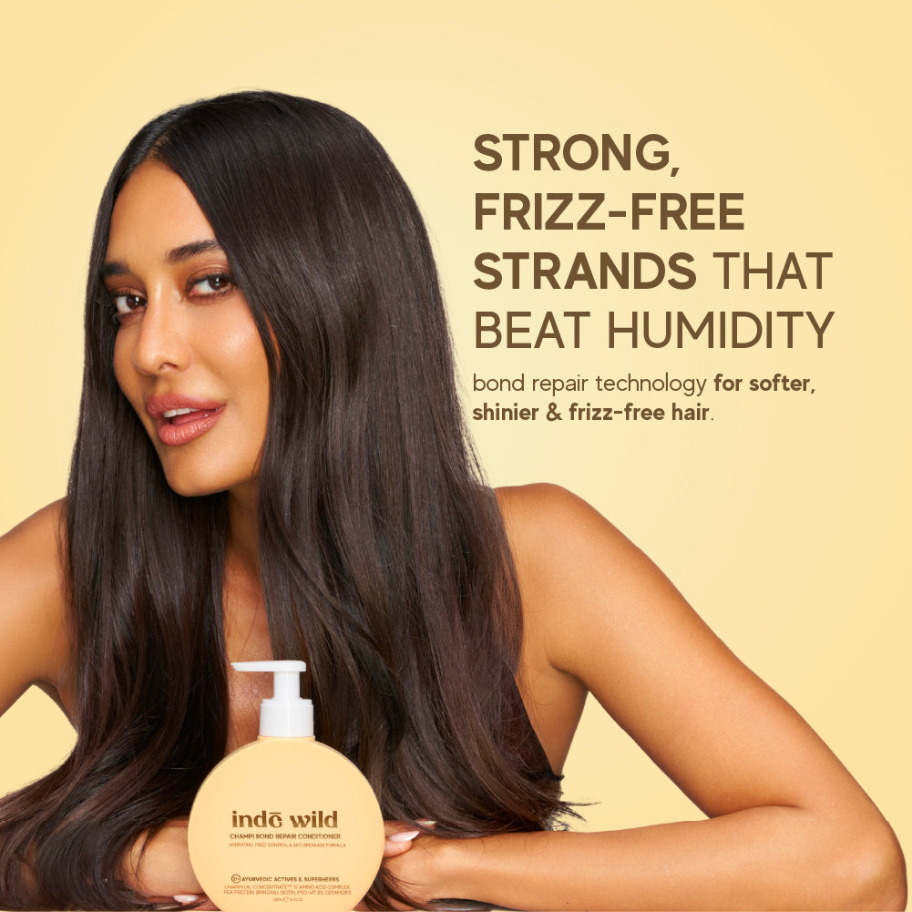 The Champi Bond Repair Shampoo + Conditioner Duo is a high-performance system powered by 21+ Ayurvedic superherbs and clinically proven biotech actives to repair damage, calm the scalp, and restore silky strength from root to tip.